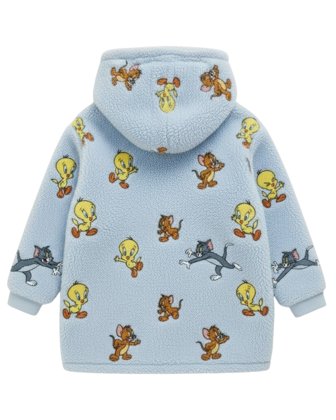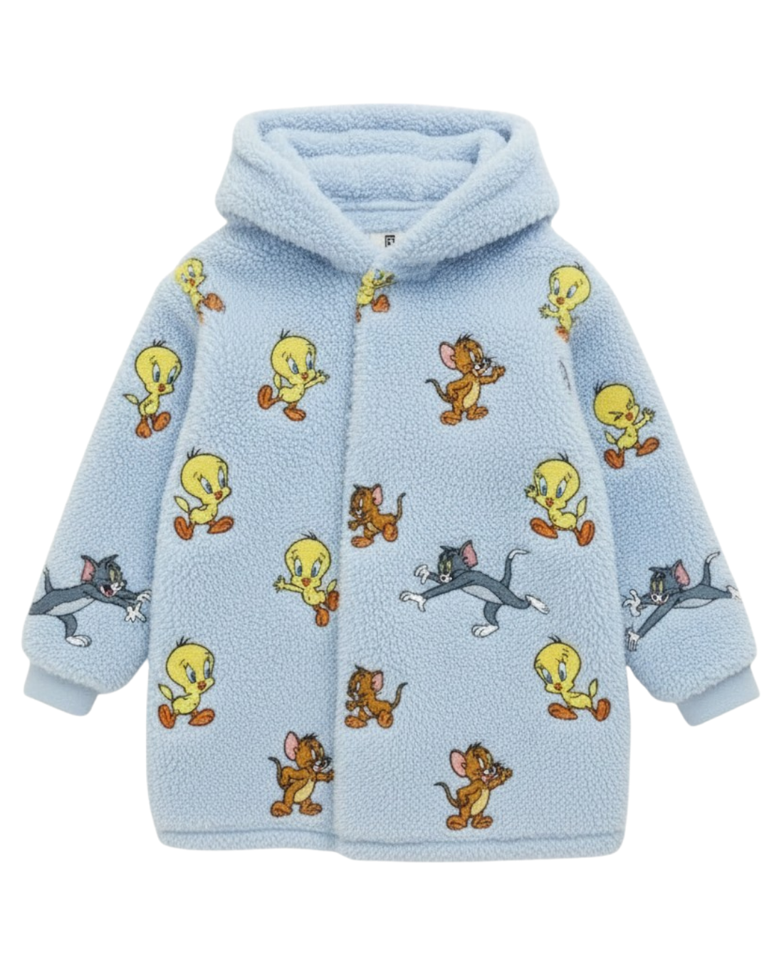 VALUENCIO | Çizgi Film Baskılı Uzun Kollu Kapüşonlu Oversize Peluş Sabahlık